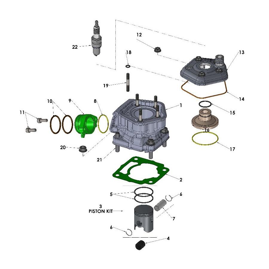 1 Cylinder Kit - (Includes Studs, Piston, Rings, Pin & Clips) EKMU0362 REF: 1