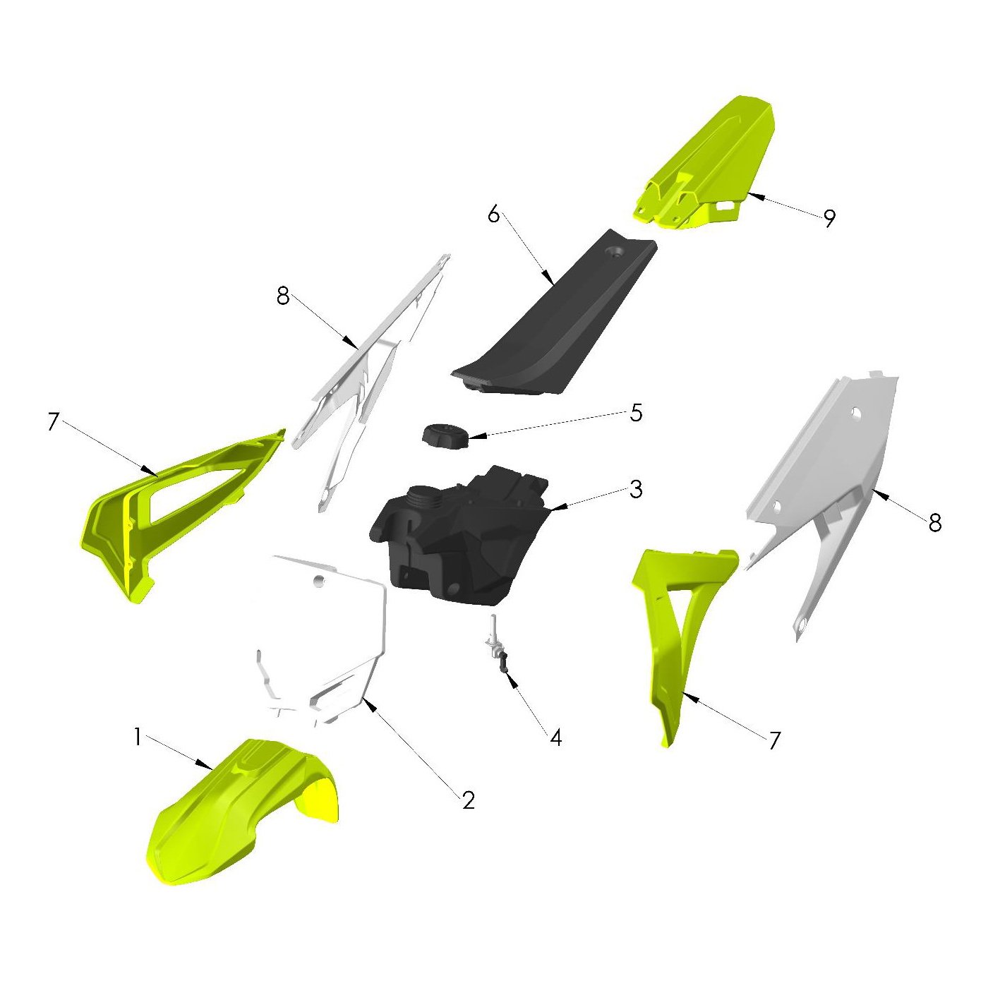 9 Rear Fender x – Denotes Color BLK, WHT, YEL, FLO TCMU0045x REF: 9
