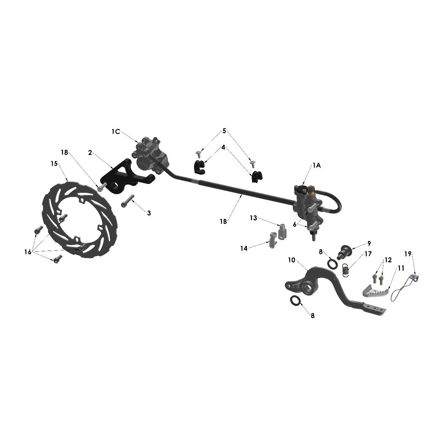 1 Brake Assembly Rear (Master Cylinder, Line and Caliper) BAC60019 REF: 1